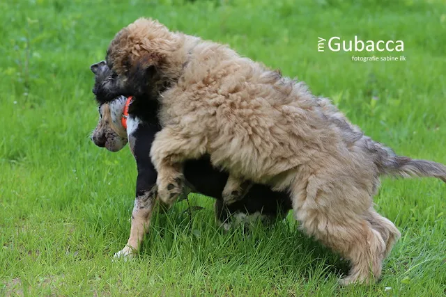 Aber zum Glück hat auch jeder Arbeitstag mal ein Ende und wir haben wieder den kleinen Lennox mit seinem Frauchen getroffen. Das Toben und Rennen mit einem gleichaltrigen Welpen tut Gubacca sichtlich gut und die beiden hatten wieder viel Spaß.