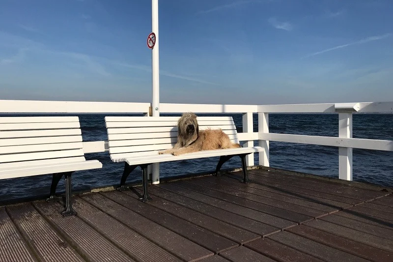 Gubacca "mausert" sich momentan zum perfekt Outdoor-Model mit geübten Blick für schöne Motive. Ich musste richtig lachen, als er am Ende unseres Strandspaziergang sofort "Position" auf der Bank der Seebrücke einnahm und sich gekonnt fotografieren lies.