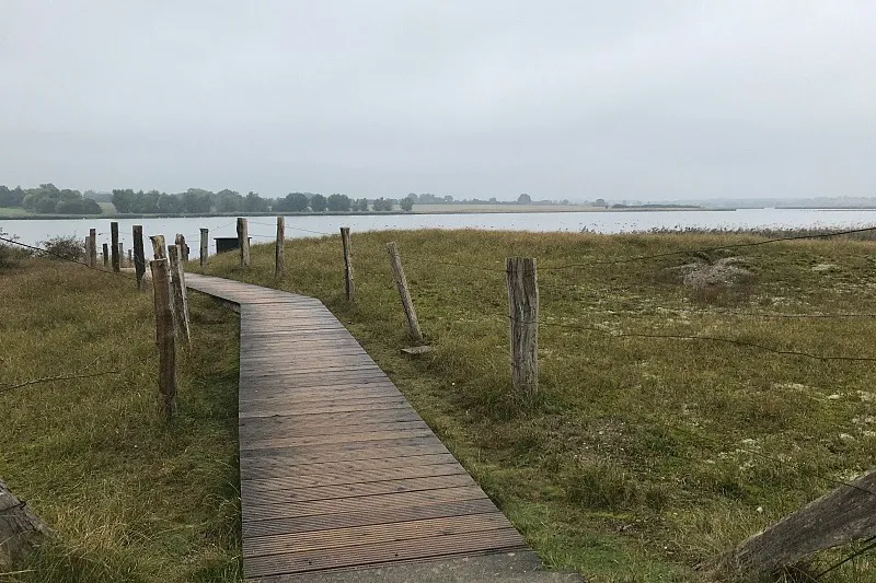 Nach dem Frühstück hatte es angefangen leicht zu regnen, aber wir beschlossen uns trotzdem noch einmal auf die Suche nach den Kranichen zu machen. Am Vorabend hatte mein Vater wieder riesige Schwärme in der Nähe von unserer Ferienhaussiedlung gesehen. Kein seltenes Phänomen scheinbar, da unsere Straße hier nach ihnen benannt wurde (Kranichenring). Diesmal versuchten wir unser Glück mit dem Auto und fuhren zu unserem Nachbarort, nach Sehlendorf. Dort liegt das NABU-Naturschutzgebiet "Sehlendorfer Binnensee und Umgebung".